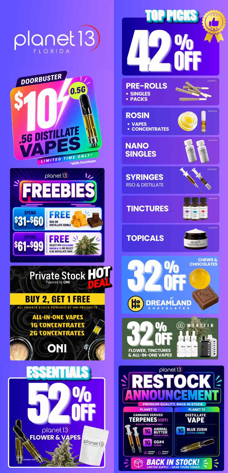 52% Off Planet 13 Flower & Vapes
