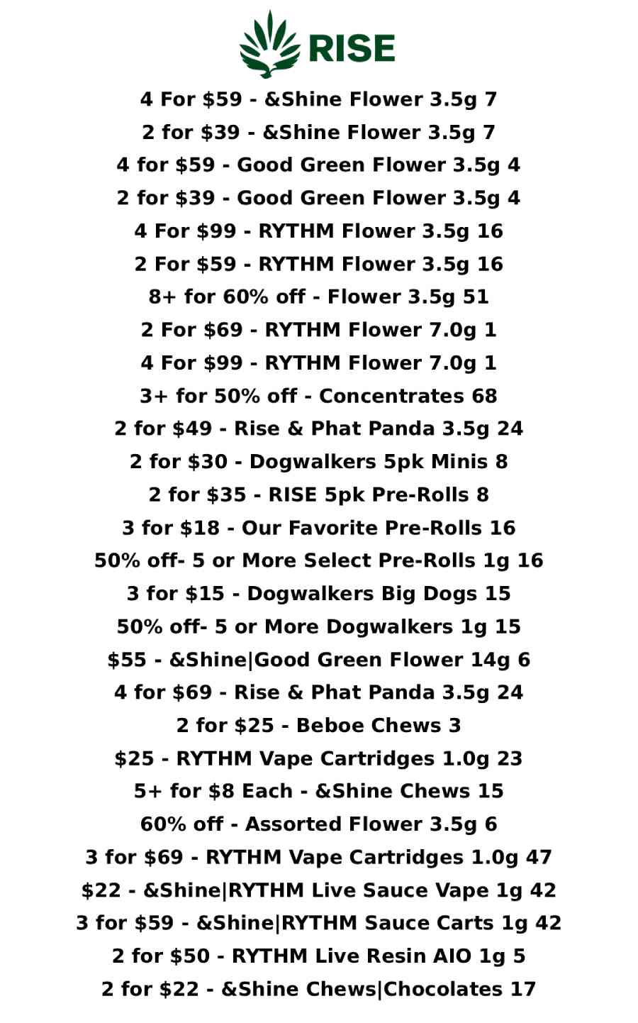 4 for $69 - Rise & Phat Panda 3.5g